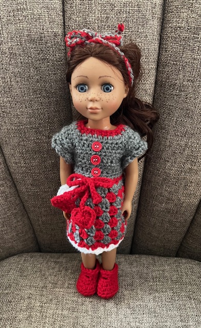 While this is a new to me pattern this year I suspect it will become a staple for the 18 inch doll donation for years to come. I have one more to make for the other My Life doll and I will be done for the 2025 donation. You can find the free pattern here.