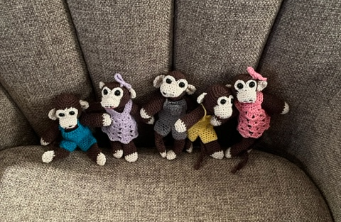 I postponed the Halloween box a year but decided I'd still deliver the birthday gifts late. As the dates got moved off for delivering the gifts I put the last monkey aside to finish up the doll donations.